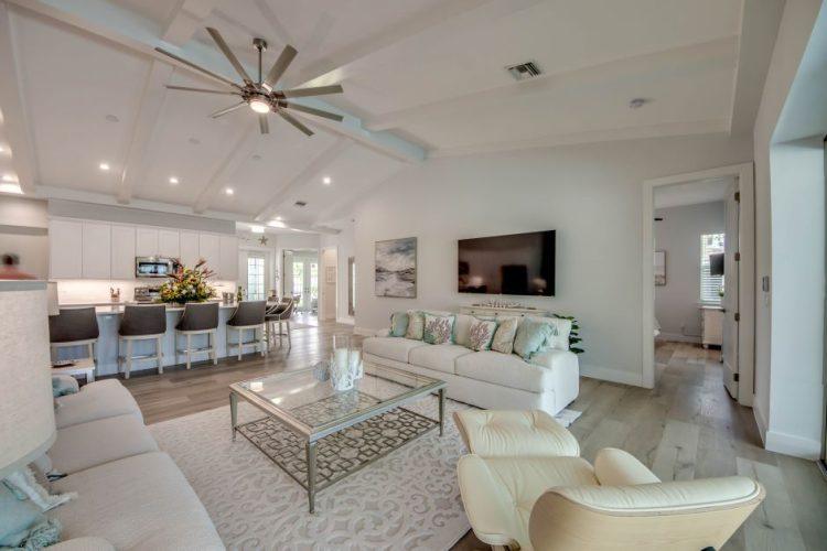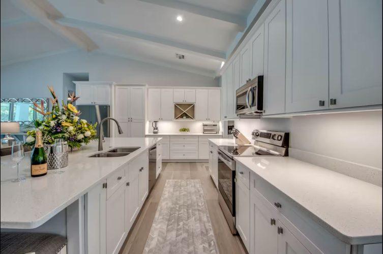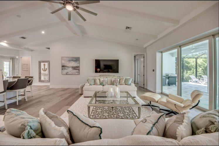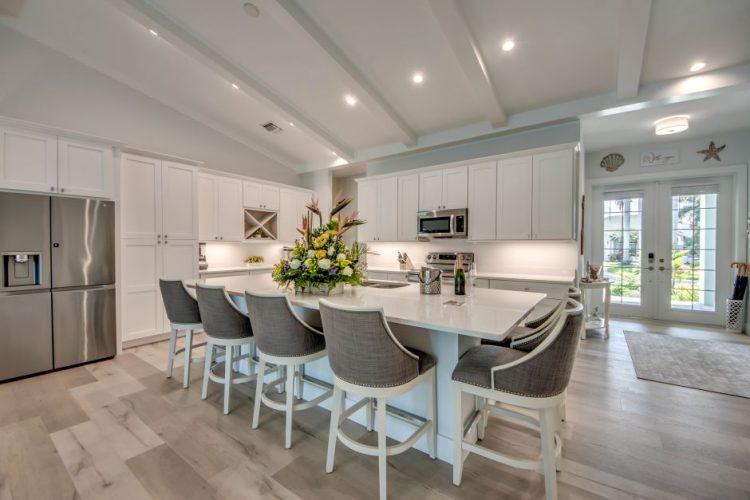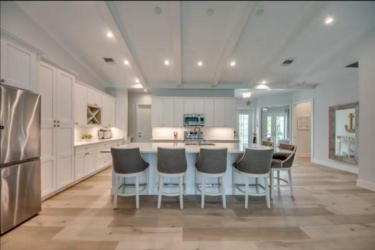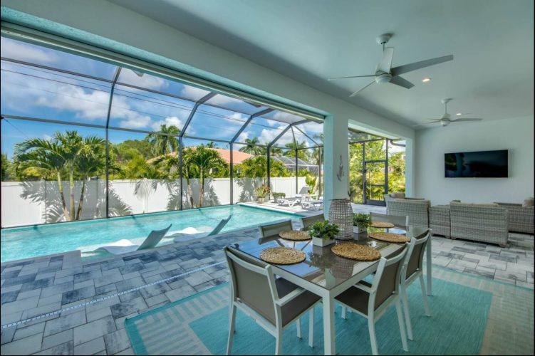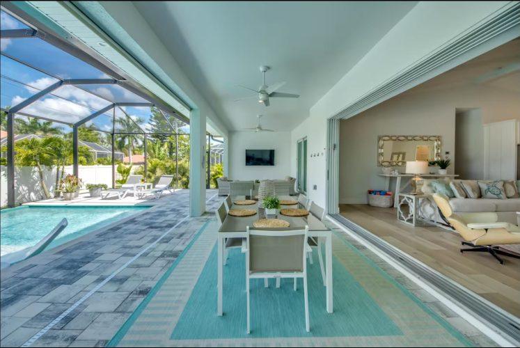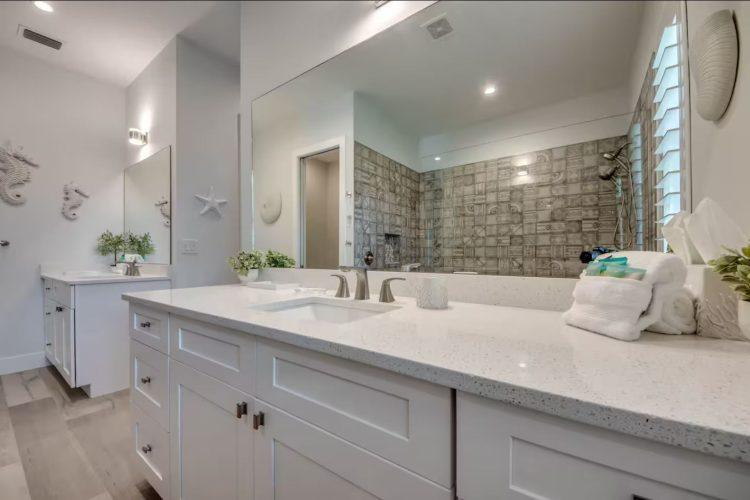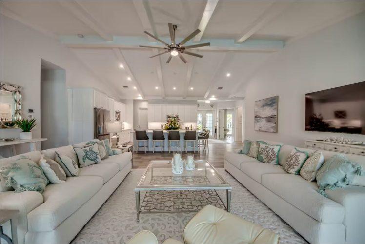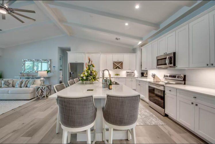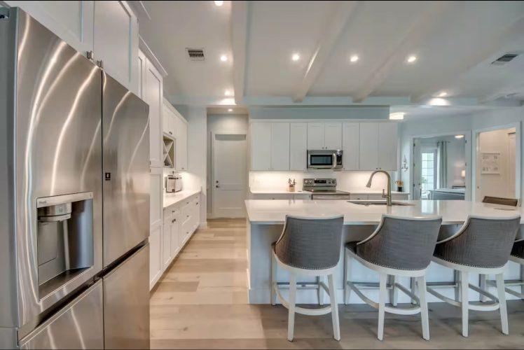 Welcome to the brand new, absolutely stunning, House Coastal Caye! This 4 bedroom, 3 bathroom vacation rental is fully furnished and equipped. Beautifully decorated with a coffee bar, game room, laundry room, all stainless-steel appliances, and much more. Out by the huge screened-in pool area you’ll find a BBQ propane grill, several loungers, smart TV, large table and chairs. The heated pool features a shallow “beach area”. Come enjoy Coastal Caye and make your vacation amazing!