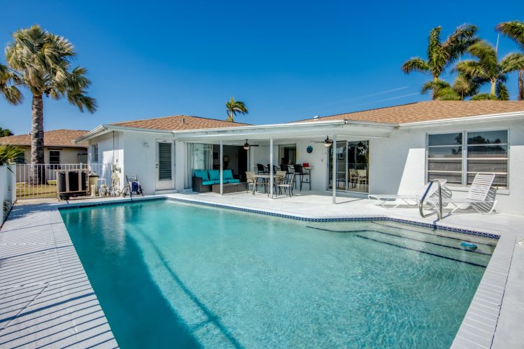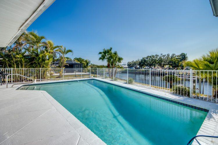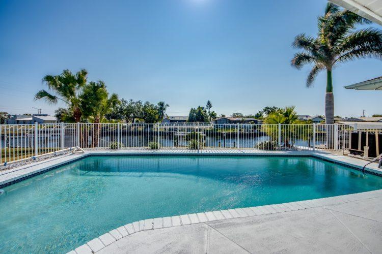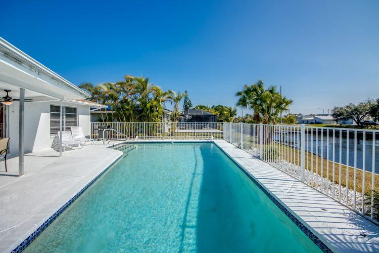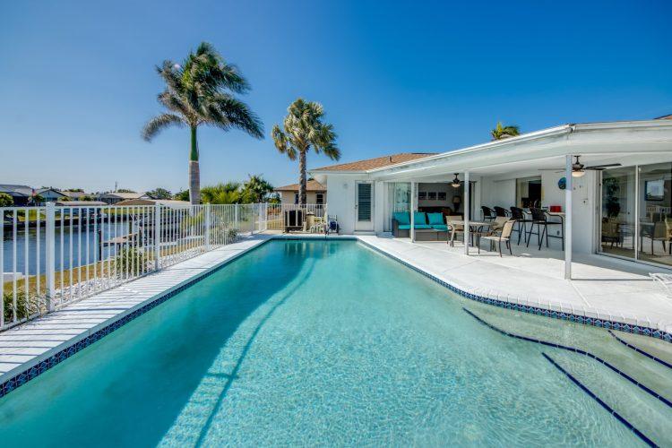 Enjoy the open, Southern-exposure views on the extra wide Gulf access canal. The pool is heated, as well as having a nice covered area by the pool to get some shade or retreat during a rainstorm. The home is centrally located so you’re 30 minutes or less by car from many popular destinations as well as walking distance to a Hooters restaurant!