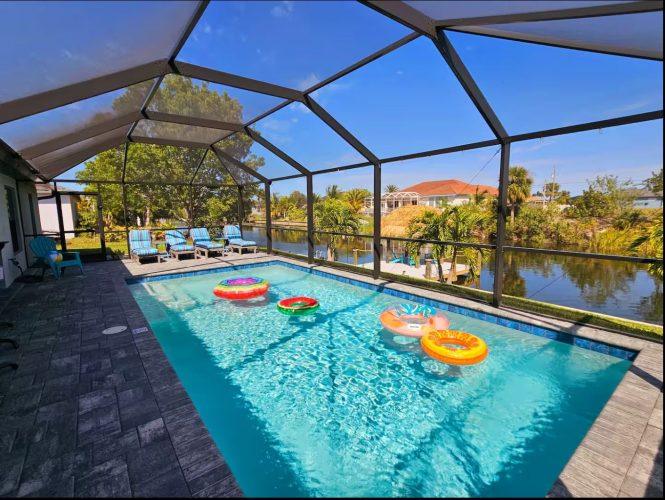 Welcome to the new, absolutely amazing, Villa Terrace Breeze! This stunning vacation rental is fully furnished and equipped. Built in 2022, this rental is brand new and ready to host an amazing vacation for yourself and your family. Out by the large screened-in pool area you’ll find a BBQ propane grill, several loungers, large table and chairs as well as the hot tub. The electrically heated pool is perfect for relaxing and seeing what the Florida lifestyle is about! Kayaks, Ping Pong Table