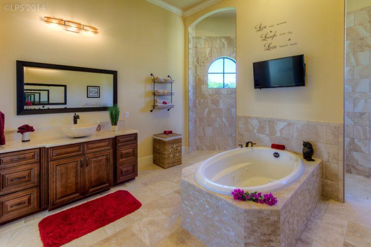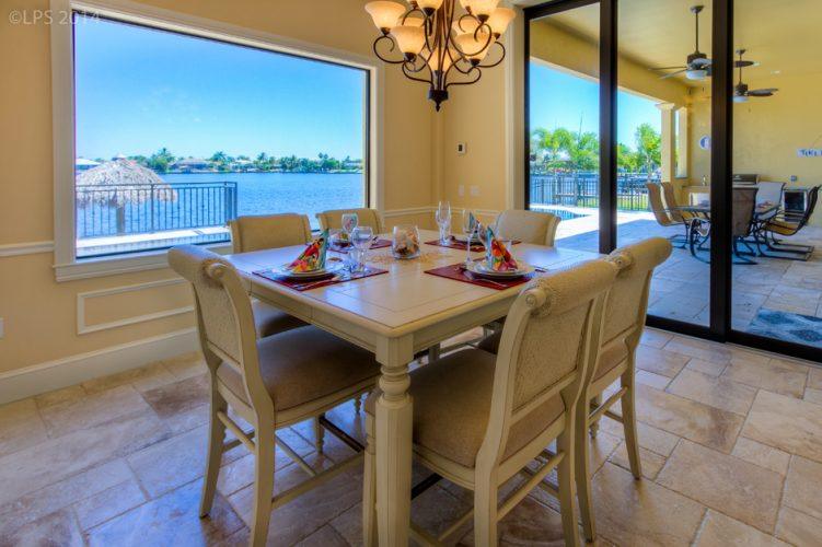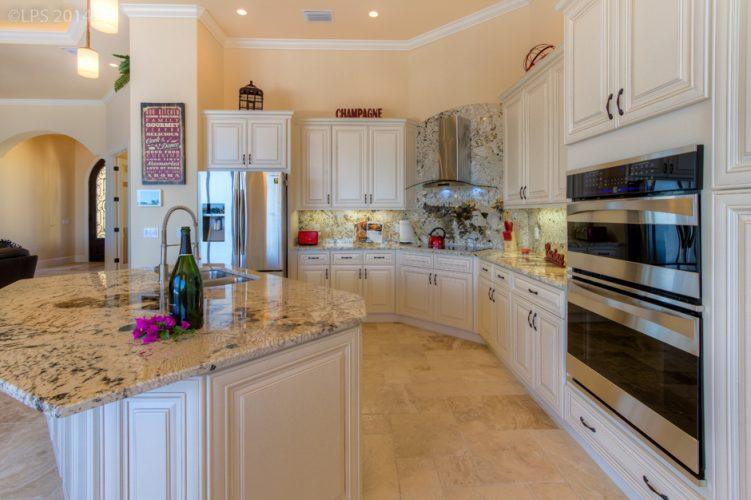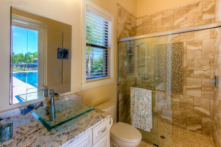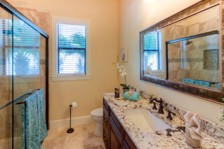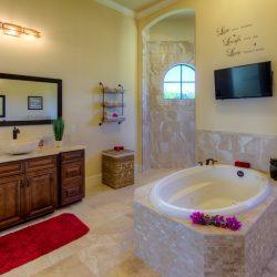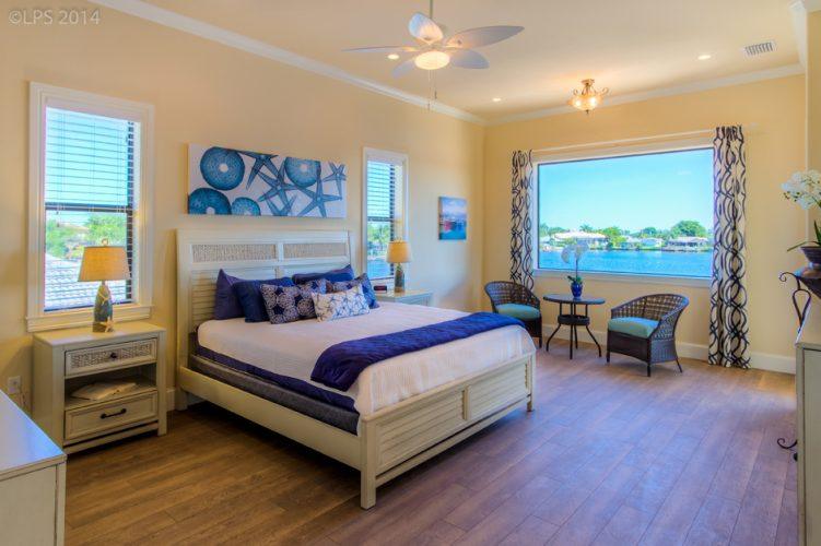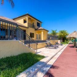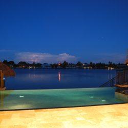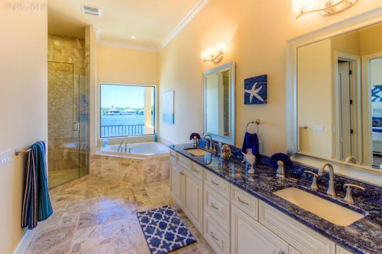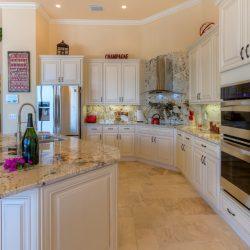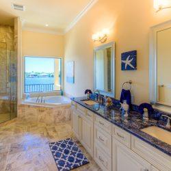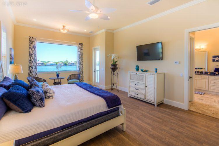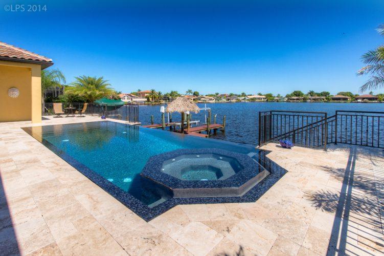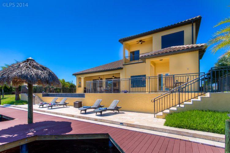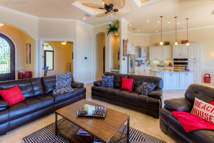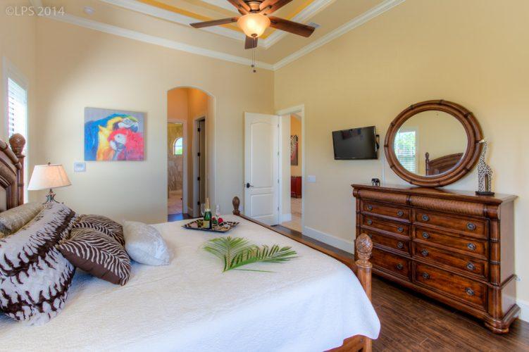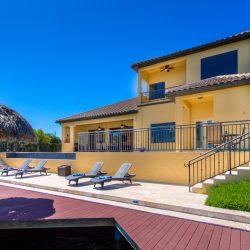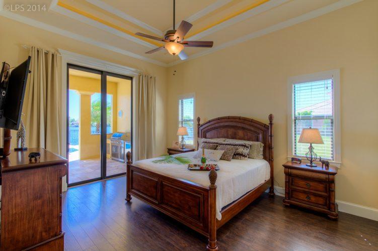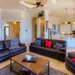 This gorgeous vacation Villa will leave you breathless as you enter the front iron arched door & see the infinity edge pool as it appears to seamlessly flow into the huge lake. The villa features a Jacuzzi that sits inside the pool as well as an outdoor kitchen area in the lanai that is equipped with a large BBQ grill and outdoor fridge. There is dining space outside for up to 10 people. Two master suites (one upstairs and one downstairs) allow for plenty of room. The house offers 5 TV’s total.