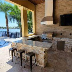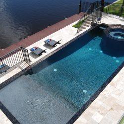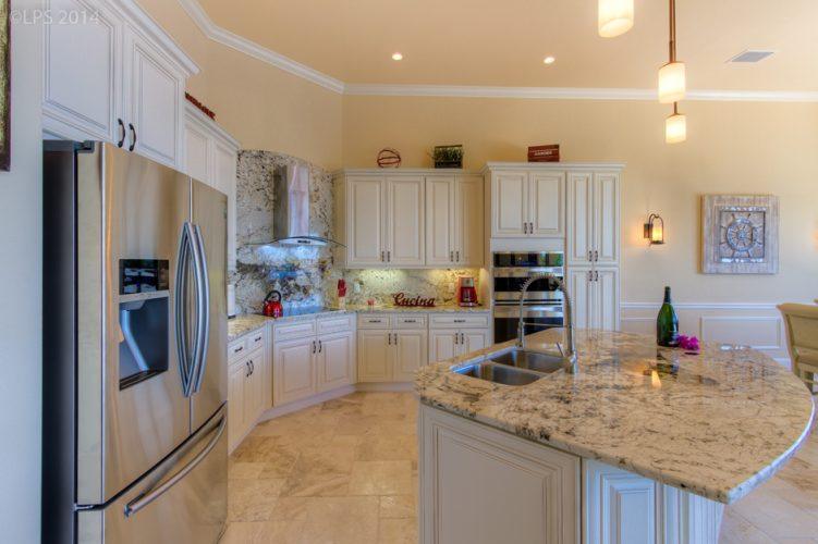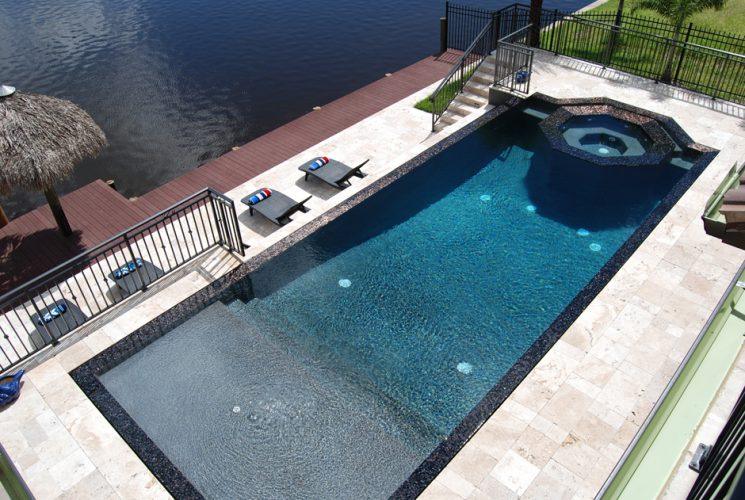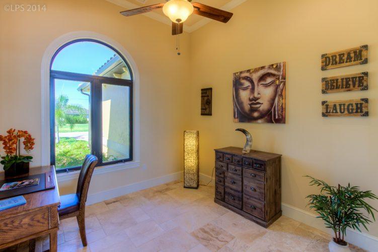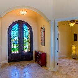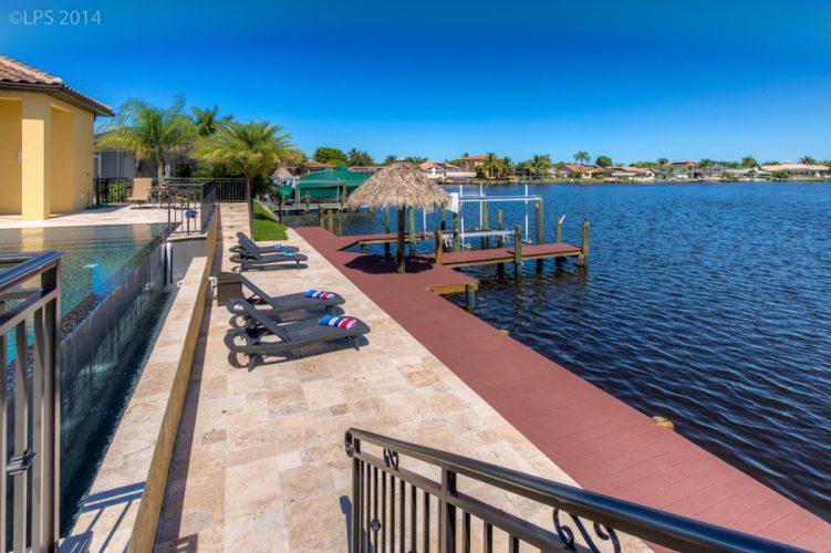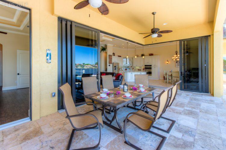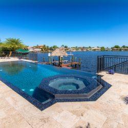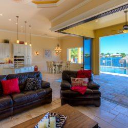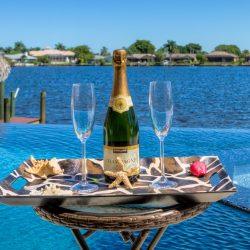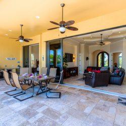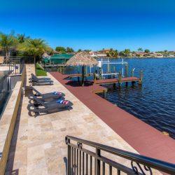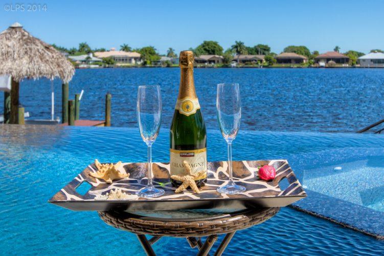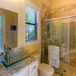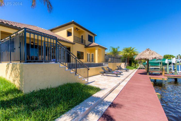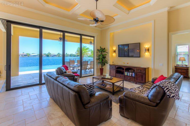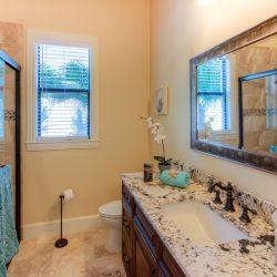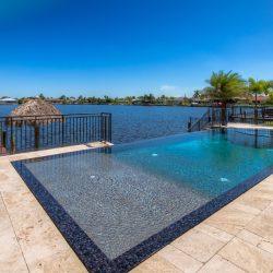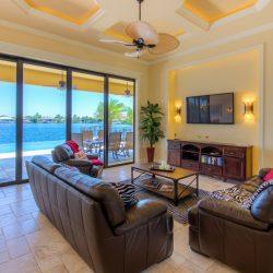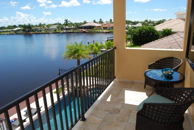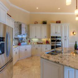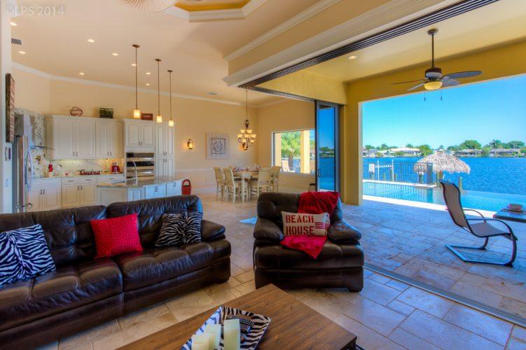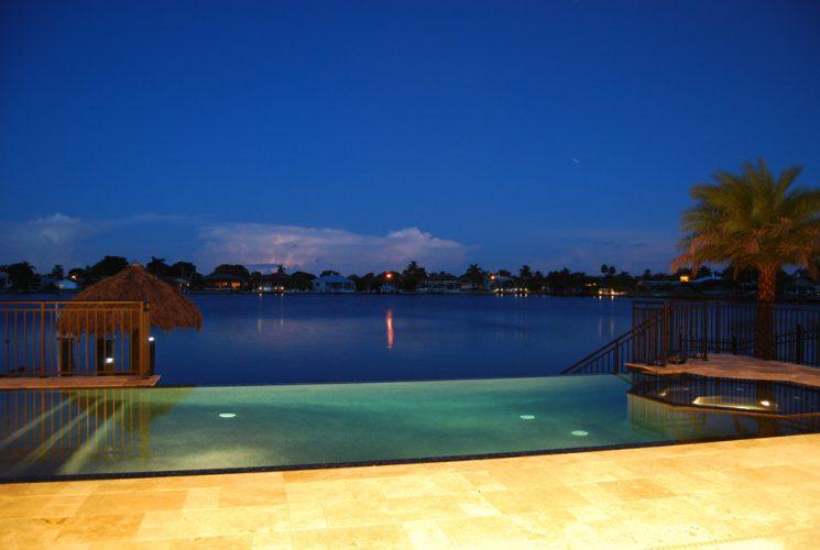 This gorgeous vacation Villa will leave you breathless as you enter the front iron arched door & see the infinity edge pool as it appears to seamlessly flow into the huge lake. The villa features a Jacuzzi that sits inside the pool as well as an outdoor kitchen area in the lanai that is equipped with a large BBQ grill and outdoor fridge. There is dining space outside for up to 10 people. Two master suites (one upstairs and one downstairs) allow for plenty of room. The house offers 5 TV’s total.