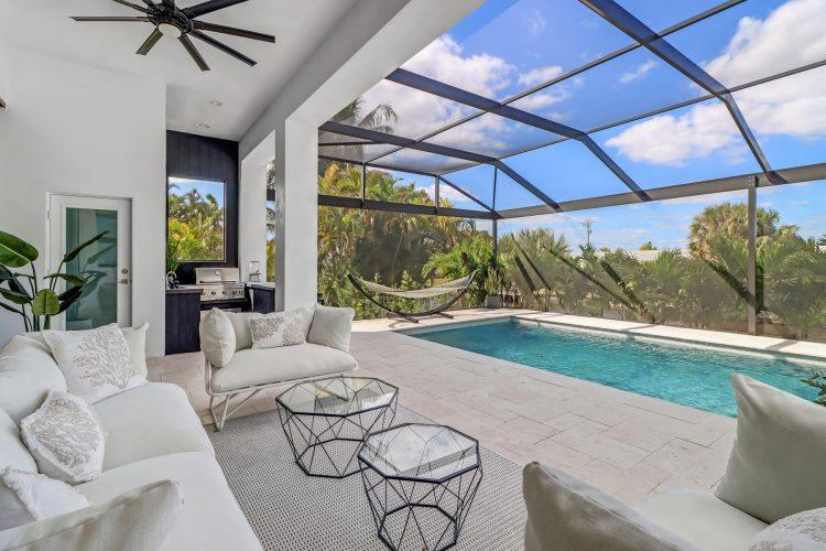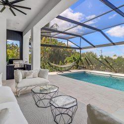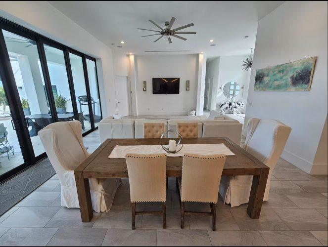 Welcome to the brand new, beautifully and stylishly decorated villa Vendome, located on a nice gulf access canal in the great Yacht Club area serving as the perfect destination for all ages! This house offers 3 bedrooms, 4 beds and 2.5 bathrooms, and is fully furnished and equipped. Out by the pool area you’ll find an oversized heated pool and spa and plenty of seating. The palm trees around the pool area provide lots of privacy and the outdoor kitchen is perfect for BBQing. Come and enjoy it!!